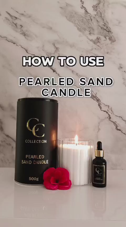 Our pearled sand candles are unscented, but you can customise them with fragrance. Simply add 1–2 drops of essential oil or candle fragrance oil to the pearled sand candle, placing the drops about 2 cm away from the wick. Never add oils while the candle is lit. Please use caution, as oils are highly flammable, and only do so at your own risk. For added variety, CC Collection offers a range of fragrance oils to complement your candle.